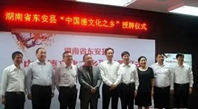 我们还参与了县里的文化建设。记得我当作协主席的第二年,县里申报中国德文化之乡项目,领导指定我为领导小组办公室主任,撰写申请报告,准备相关资料,发动作者们挖掘文化底蕴,形成德文化建设所需要的相关资料。我们协助中南大学国学研究中心刘立夫教授及团队完成“厚德东安”和“武德东安”两个课题研究,中国社会科学出版社出版了《厚德东安》一书,《武德东安》等待出版。自己主编了《东安当代散文选》和《德在东安》,将本地的国家、省、市、县会员作品收入“囊中”,对县里的文化建设尽了一点绵薄之力。两年后,县里成了首个“中国德文化之乡”,县委书记到北京领取了金色的牌匾。