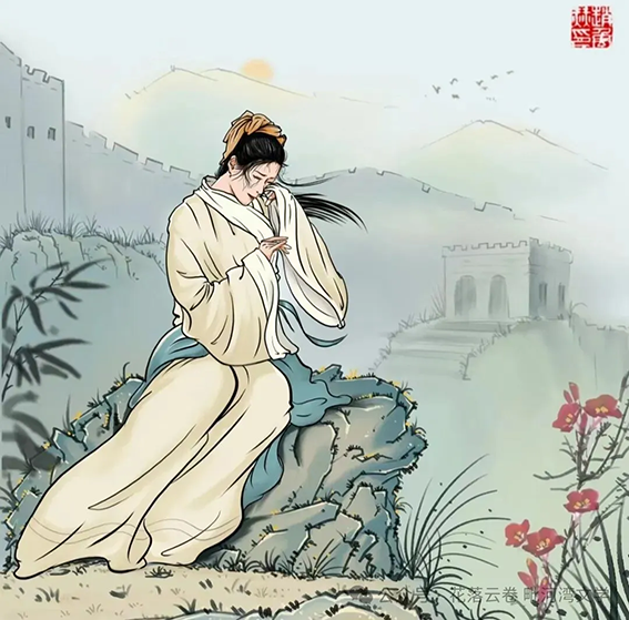 后来的故事我们都知道了——她哭了七天七夜,哭倒了长城八百里。在坍塌的城墙间,她认出那件破旧的衣衫,和她怀里崭新的寒衣形成残酷的对照。