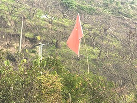 花园沟的山坡把五星红旗抖在枝桠上