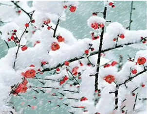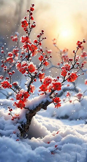 岭谷冰魂,凌雪迎霜。绽寒英孤傲芬芳。报春吐艳,俏丽红妆。扮家园靓,苑亭美,阁房香。