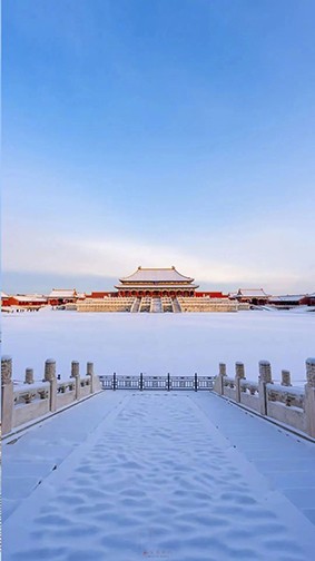 朱墙黛瓦入苍茫,铺玉飞花锦秀章。
