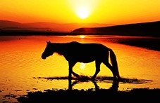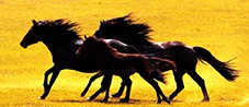 说到写马的歌曲,我们会首先联想到经典的抗战壮歌《黄河大合唱》中那句“风在吼,马在叫,黄河在咆哮……。”风的怒吼、马的嘶鸣、黄河的咆哮,构成了一幅天地共鸣的壮阔画面。在这支歌里,风、马、黄河都被作者赋予了人的意志,象征着自然力量与民族精神的融合,展示出了中华民族不畏强敌,同仇敌忾,在民族存亡的危难时刻,团结一心抗战到底的坚定决心与不屈信念。其后的那首铿锵激昂的《我们在太行山上》,把这种同仇敌忾,与敌人血战到底的气势抒发得更加淋漓尽致:“我们在太行山上,山高林又密,兵强马又壮。敌人从哪里进攻,我们就要他在哪里灭亡。”