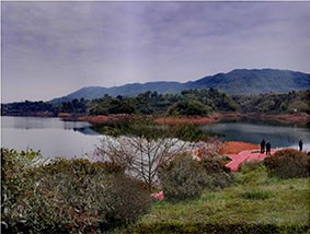 层林叠翠锁群峦, 万顷修篁起碧澜。