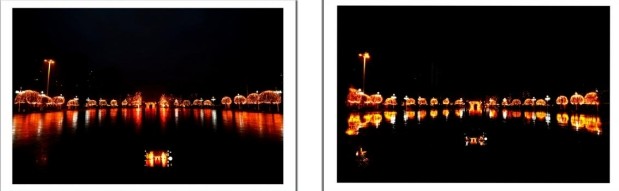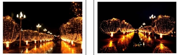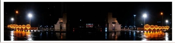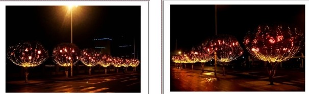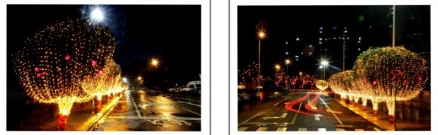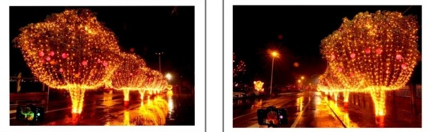 2022年,珙县县城巡场照常进行张灯结彩庆祝春节活动,在桂花树上牵绕灯光线,桂花树因灯光在夜幕彰显出形态的美,金黄色的灯光因桂花树形态表现自身的形态,二者组成的画面相得益彰,人为的“藤缠树”为县城春节的夜晚增添了如诗如画的美景。