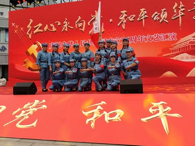 本次活动共呈现15个精彩节目,其中由街道老体协选送、徐霞与蒋才珍领舞、18名演员参演的音乐情景剧《红军不怕远征难》,成为全场焦点。该节目紧扣国庆主题,通过生动的肢体语言与饱满的情感表达,既缅怀革命先烈、传递铭记历史的家国情怀,又展现出新时代群众昂扬向上、奋勇争先的精神风貌,赢得现场观众阵阵掌声与一致好评。