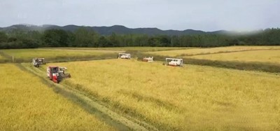 金色的稻浪幻化为金色的谷堆,进入金色的粮仓。