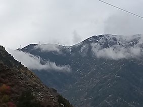 遥看雪顶云横。