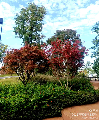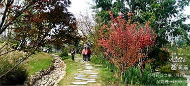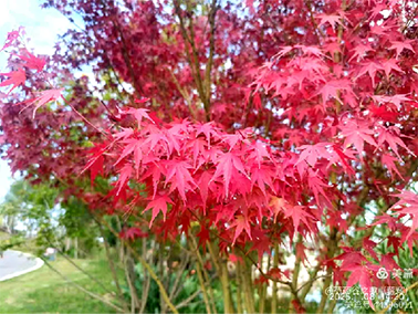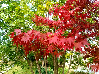 沐浴自然游客旺,红枫含笑献柔情。