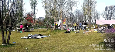 休闲度假好去处,绿茵草坪帐篷升。