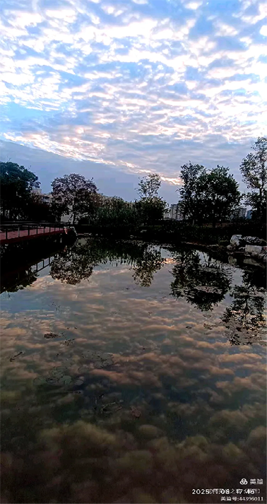 夕阳落山飘红云,晚霞余晖碧水映,