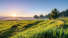 风一吹,我便冒出头来。身边的同伴,一丛丛,一簇簇,谁也不比谁高贵。我们的绿,不是园子里草坪那种被修剪得服服帖帖的、温顺的绿。我们的绿是泼辣的,是蛮横的,带着泥土的本色和太阳的焦香。高高低低,参差不齐,有的歪向河面,有的直愣愣地指著天空。牛羊的蹄子踏过,我们伏下去,夜里一场雨,明早又挺起了腰身,笑呵呵地迎着阳光;孩子的脚丫跑过,我们弯下腰,等风一来,又互相搀扶著站直了。在我生活历程中从来没有自暴自弃,从不躺下去摆烂,而是不屈不挠地向上、向上,生长、生长!
