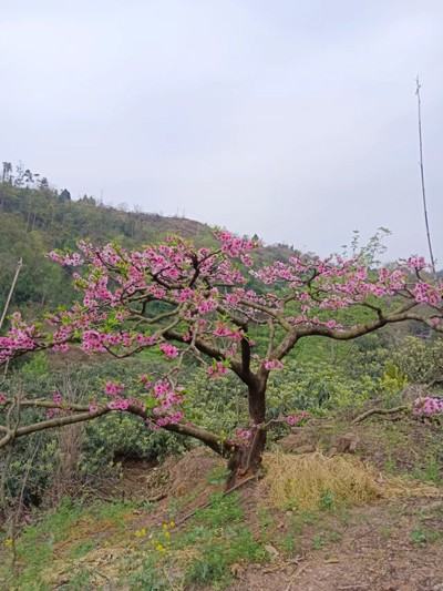 在我的家乡,横断山脉东南沿小凉山的那些褶皱一样的山沟沟里,桃花一般在除夕前后就开放了,就像是专门为致贺春节而盛开的报春花。家乡的桃花,有开在山坡、沟壑边的野山桃花,也有开在田间地头、农家小园或者围墙边上的培植桃花。每当桃花开放时,也是蜜蜂的节日,成百上千的蜜蜂围着一树桃花翩跹起舞,嘤嘤歌唱,是以,有桃花的地方,总是一派热热闹闹的景象。那可真是:“桃花一簇开无主,可爱深红压浅红”。