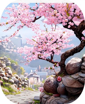 樱花开成女神的绣饰