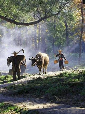 问你牛儿因何泣,犁头耖耙在后头。