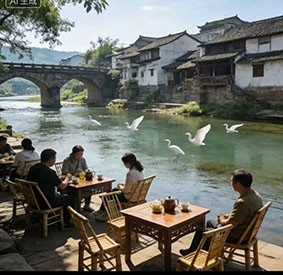 茉莉茶香融笑语,糕甜漫惹清游。人间至乐是闲悠。何须尘外,此处即瀛洲。
