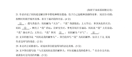 近日,北京市人大附中七年级2025-2026-1语文期末测试结束。在现代文阅读中,土家族青年作家宋雨霜的散文《妈妈是我的解梦人》是阅读材料之一。