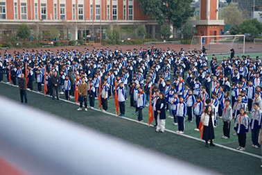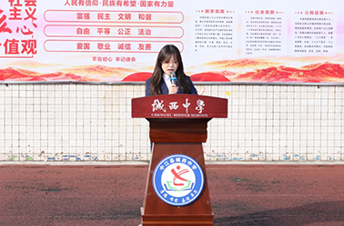 国旗护卫队步伐铿锵,五星红旗与城西中学校旗迎风舒展。少年们身姿挺拔,把对祖国的深情,融进每一次脉搏的跳动里。