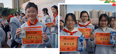 颁奖环节,星河璀璨。“新竹奖”“修竹奖”“茂竹奖”……一个个名字从主席台传出,在操场上空回荡。有人因学业精进而立,有人因艺术闪耀而歌,有人在赛场上用汗水浇灌荣光。优秀班集体、优秀旗手、优秀学生会干部、元宵节“闪耀之星”——这些发光的名字,是城西中学“适性教育”最生动的注脚:每一种可能都被欣赏,每一个差异都被尊重。一个个名字如星子般落进春天,获奖者自信登台,接过证书的瞬间,笑容比阳光更灿烂。